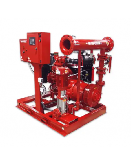 Equipo integrado FIRE PUMP SYSTEM (Contraincendio DIESEL, ELÉCTRICA PRINCIPAL Y JOCKEY), totalmente integrado e inteconectado, listo para alimentarlo electrica e hidráulicamente. Serie FPS, marca Barnes de México (Barmesa), modelo FPS-IA1½XH-YZ038 / IA1½XH-20-2 / HMV5-100-203-1B, con motor diesel marca Yanzung, 38 HP del motor de combustión interna, 20 HP de la bomba eléctrica principal, 2 HP de la bomba Jockey, aspiración natural, cabezal de descarga de 3", RPM Diesel 3000, RPM Eléctrica principal y Jockey 3500, voltaje 230, tanque de diesel con capacidad de 200 litros, para 100 PSI, con 150 GPM. Equipo configurado para recibir 1 batería no incluida. Incluye 3 tableros de control contra incendio: para bomba diesel, bomba eléctrica principal y bomba jockey.